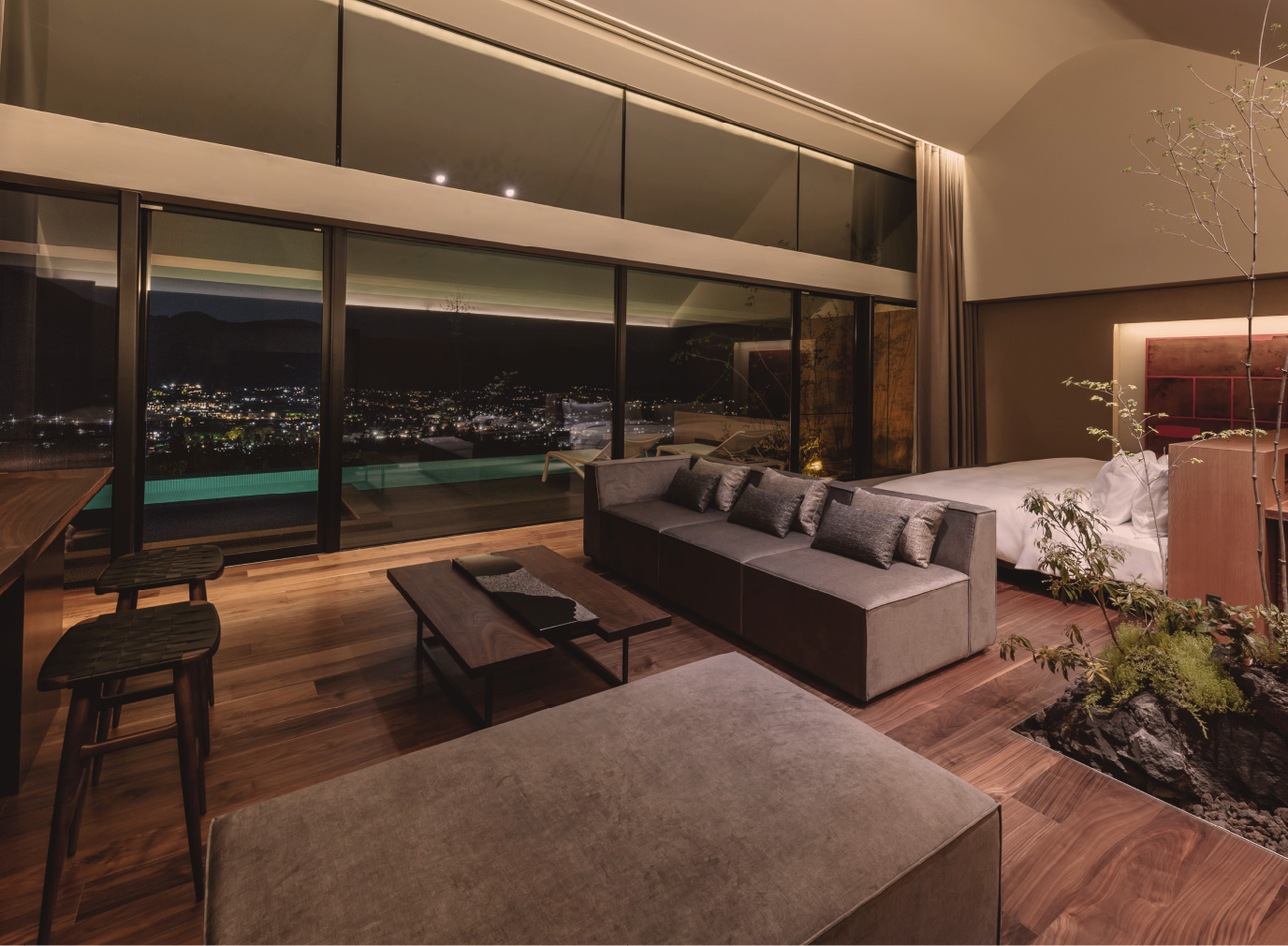 石、土、樹などの自然のマテリアル。歌うように生命の活力をみなぎらせる木や植物や水。見栄えだけの豪華さとは真逆の、身体が呼応する素材で空間をデザインするとこれからのラグジュアリーが見えてきました。ENOWAの贅を五感で感じてください。